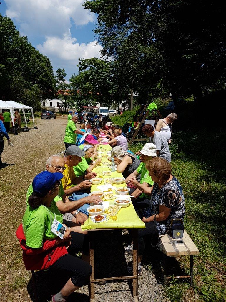 Srečanja sva se udeležila dva delegata iz našega društva. Zbor in nastanitev je bila v hotelu Everest ob vznožju Etropolske Stare gore (gorovje Balkan). Ker se je iz drugih društev poleg delegatov udeležilo še večje število njihovih članov, željnih potovanja in spoznavanja novih krajev, ljudi in običajev, je bilo vsega skupaj kar 170 udeležencev, ki pa so morali biti nastanjeni še v drugih objektih po mestu oz. po želji tudi v svojih šotorih. V petek zvečer, 21.6.2019, smo se zbrali na večerji, ki je ob glasbi DJ-ja, ki je vrtel tako sodobne uspešnišce, kot običajni balkanski repertoar, postal že prvo družabno srečanje, z zaključkom v začetku naslednjega dne.