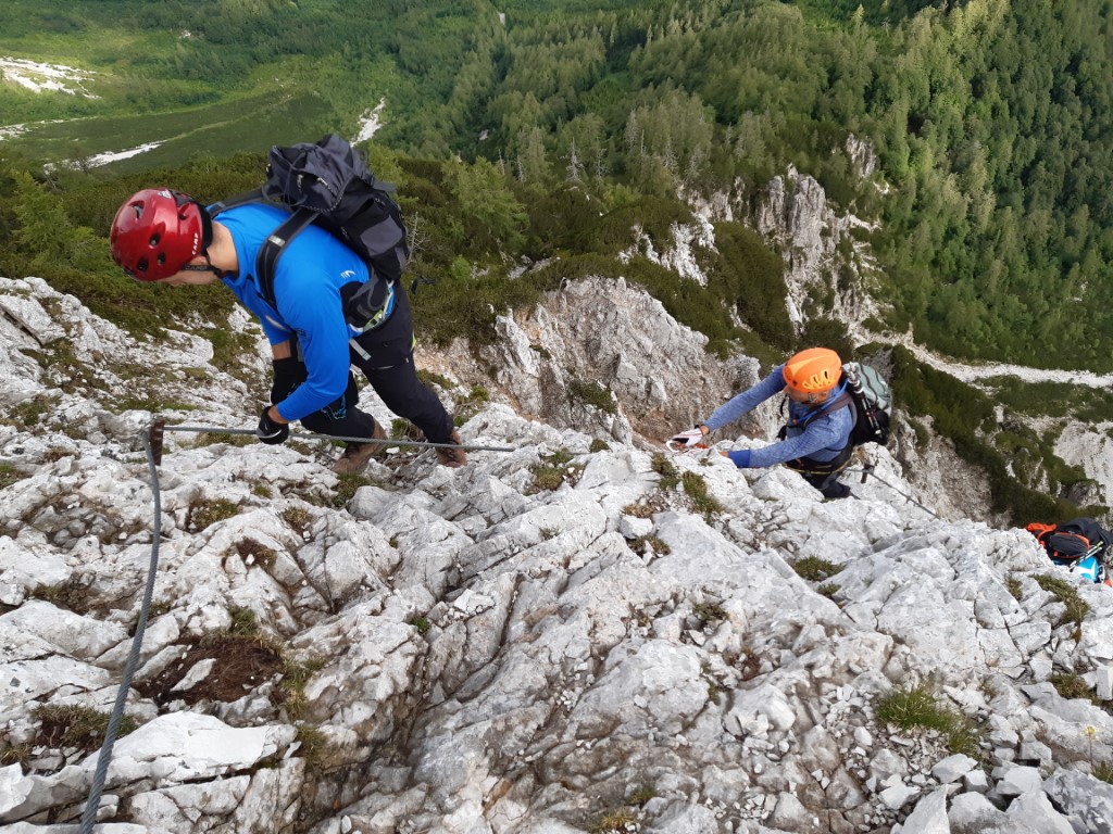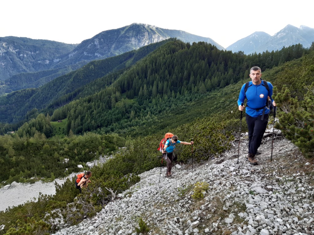 Planirano turo na Bavški Grintavec sem moral zaradi slabega vremena v soboto najprej prestaviti na nedeljo, kasneje pa odpovedat. Kot nadomestilo sem prijavljenim ponudil Cjajnik. Tako se nas je 5 udeležencev podalo čez mejo v sosednjo Avstrijo, točneje do planinske koče Košutahaus, ki se nahaja na severni strani pod grebenom Košute. Tam je bil tudi začetek našega vzpona in seveda cilj, saj je šlo za krožno turo. Najprej skozi gozdiček, pa skozi rušje in na koncu po melišču smo se povzpeli do izhodišča plezane poti. Na izhodišču smo si nadeli čelade in komplete za samovarovanje ter zagrizli v steno. Po približno dveh urah smo dosegli v meglo zavit vrh Cjajnika. Po krajšem postanku in malici nas je čakal še zelo zahteven sestop z vrha proti grebenu Košute, ki se s severne strani strmo dviguje in ločuje Slovenijo in Avstrijo. Nadaljevali smo po razgibanem grebenu Košute čez Macesje. Sledil je še zadnji vzpon na Košutnikov Turn. S Košutnikovega Turna smo se vrnili pod vznožje zadnjega vzpona, nato pa nas je čakal zelo zahteven in atraktiven sestop po ferati. Kaj kmalu nas je pričakala še atrakcija dneva, pravi viseči most, preko katerega smo se preselili na sosednjo malo manj krušljivo steno in se po njej spustili na melišče. Sledil je spust po melišču do prvih grmičkov, v nadaljevanju pa skozi gozd nazaj na izhodišče.