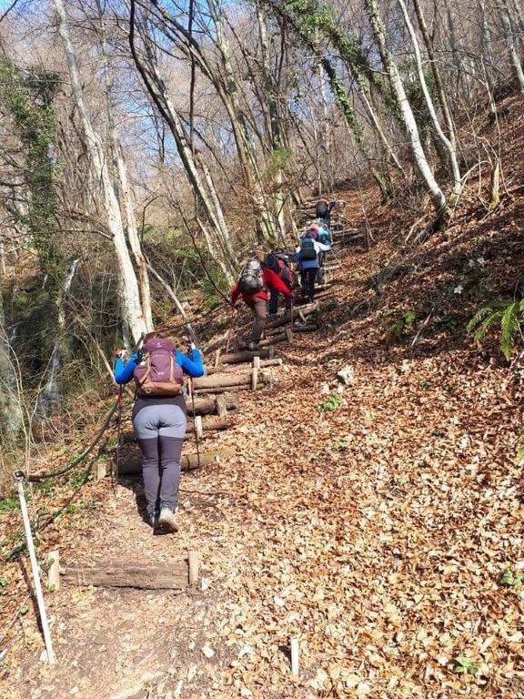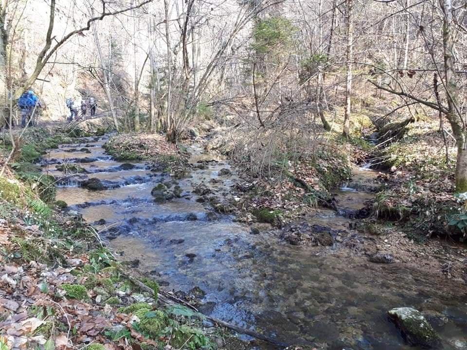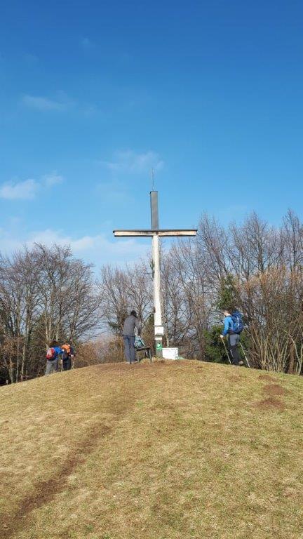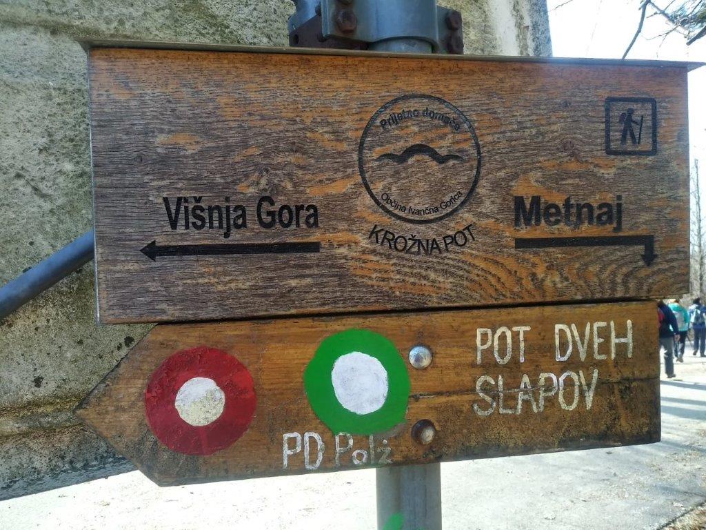 Planinci smo se zbrali v Višnji Gori, na železniški postaji, z maskami na obrazih, z medsebojno razdaljo. 31 udeležencev smo vodili 4 vodniki z negativnim testom. Z vodnikom so ves čas hodili isti udeleženci, z upoštevanjem medsebojne razdalje. Med skupinami pa je bila razdalja povečana. Brez nezadovoljstva smo upoštevali vsa priporočila NIJZ-ja in krenili proti cilju. Le kratek del poti je po pločniku in že smo zavili na makadamsko pot, ki je zavila v gozd in se kmalu zožila v stezo. Mehka steza in ob njej polno cvetočega teloha in zvončkov, ki so pobelili brežine ob potoku Kosca, ki glasno žubori, ko se preliva po kamnih in se zliva v številne tolmunčke. Pot se vzpenja ob potoku, ga večkrat preči po brveh in nas pripelje pod širok slap. Voda se zliva v manjših curkih po z mahom obraščenih lehnjakovih kamnih. Pot ob slapu se strmo vzpenja po vdelanih stopnicah. Nad slapom se pot položi, mi pa smo se privoščili kratek počitek, saj nas je strm vzpon zadihal in segrel. Sledila je še prijetna hoja po gozdni stezi in že smo bili v lepo urejeni vasi Vrh nad Višnjo Goro. Za kmečkim turizmom Habjan, ki zaradi Covid 19 ne obratuje, smo zavili na kolovoz, ki se strmo vzpenja in se konča na vrhu Gradišča, kjer je velik križ in informacijska tabla o prazgodovinskem naselju Gradišče. Po skupinah smo se posedli in se okrepčali z malico iz nahrbtnikov. Za prostran razgled smo bili tokrat prikrajšani, ker je bila nizka oblačnost. Pa nič zato, saj bomo zelo radi to lepo in zanimivo pot še kdaj prehodili. Majda je povedala nekaj zanimivosti o Gradišču, bližnjem Virskem mestu, o Višnji Gori, čebelarju Rochicu, pisatelju Josipu Jurčiču, legendo o polžu, ki je simbol Višnje Gore in kratek odlomek iz Jurčičeve povesti Kozlovska sodba. Z ustrezno razdaljo smo se razporedili po vrhu za skupno fotografiranje. Do vasi smo sestopili po isti poti, nato pa ob cesti skozi vas in po stezi skozi gozd do cerkve, od koder se je že videl naš zaključni cilj – parkirišče.