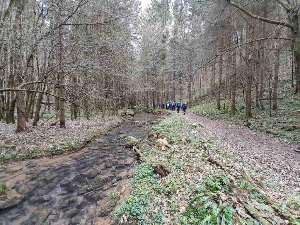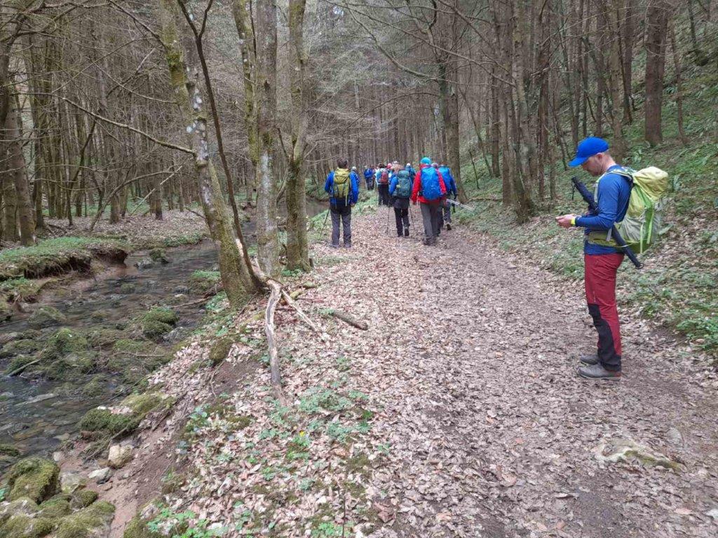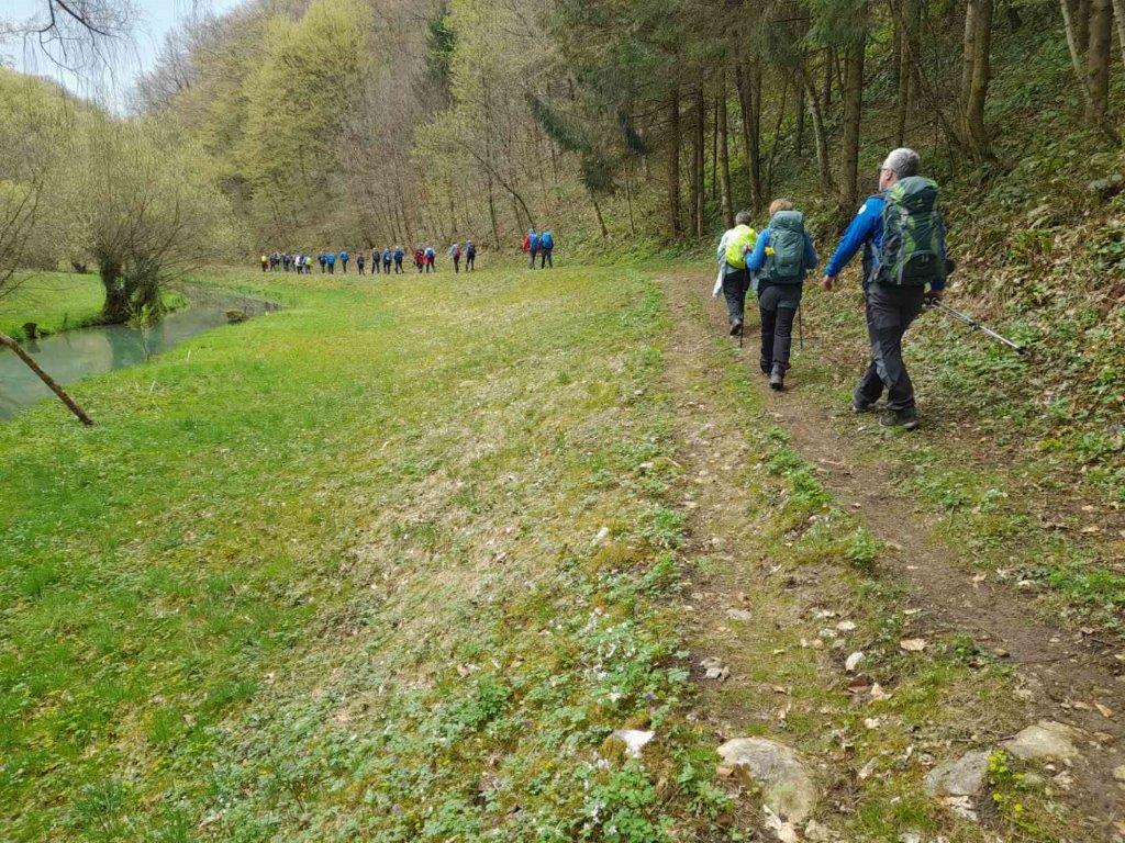 Osrednjega pohoda, ki je potekal od pokritega vkopa pri Karteljevem, mimo Žagarjevega mlina v Bezgavcu, do Prečne, se je udeležilo 31 pohodnikov. Novomeščanom so se tokrat pridružili pohodniki iz PSK Pobeda iz Beograda, iz PD Konjuh iz Tuzle, iz PD Loče pri Slovenskih Konjicah in iz PD Semič. Prehodili smo razgibano, razgledno 13 kilometrsko pot. Počitek in malico smo imeli v Bezgavcu, kjer so nas ujele prve dežne kaplje. Skrbno urejeno okolico mlina in mlin nam je razkazal gospodarjev dvanajst letni sin Tine. V dežju in vetru smo nadaljevali s hojo. Spomladansko obarvana narava je bila v dežju očarljivo lepa in dišeča. Razgledi pa zastrti z kapljično zaveso. Lepo nas je bilo videti, ko smo v strnjeni koloni, mokri, nasmejani, zadovoljni prišli na cilj.