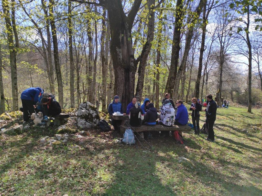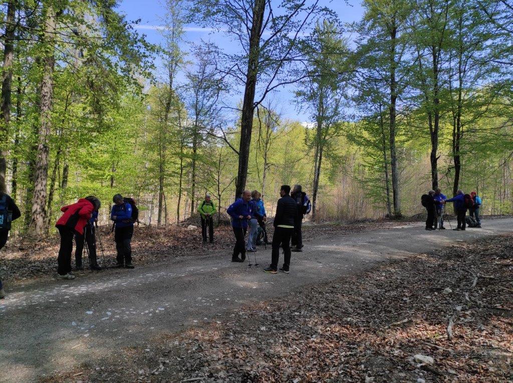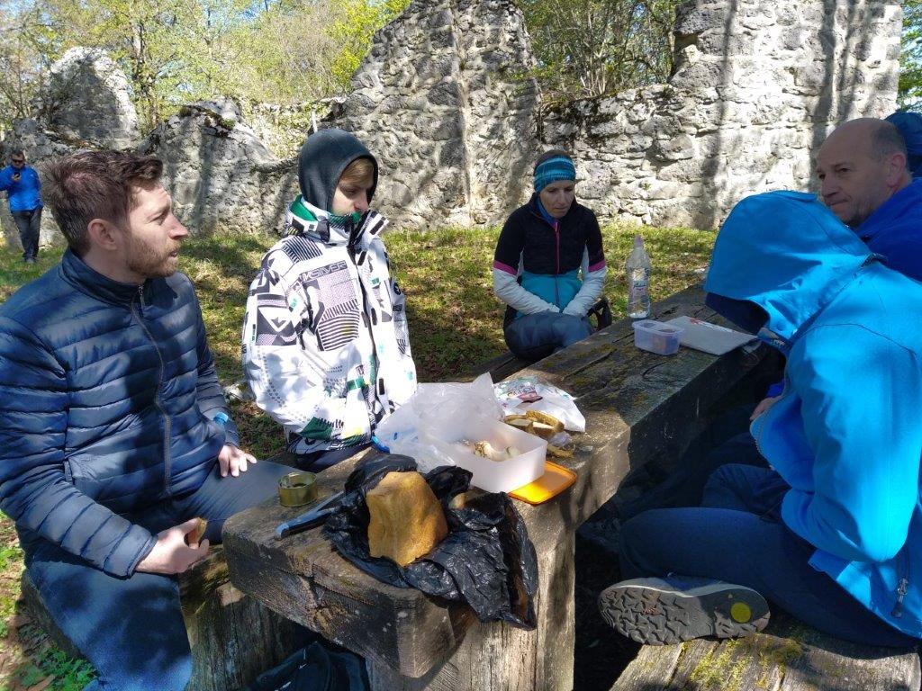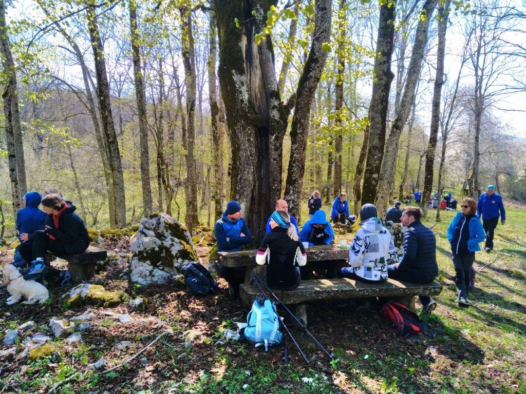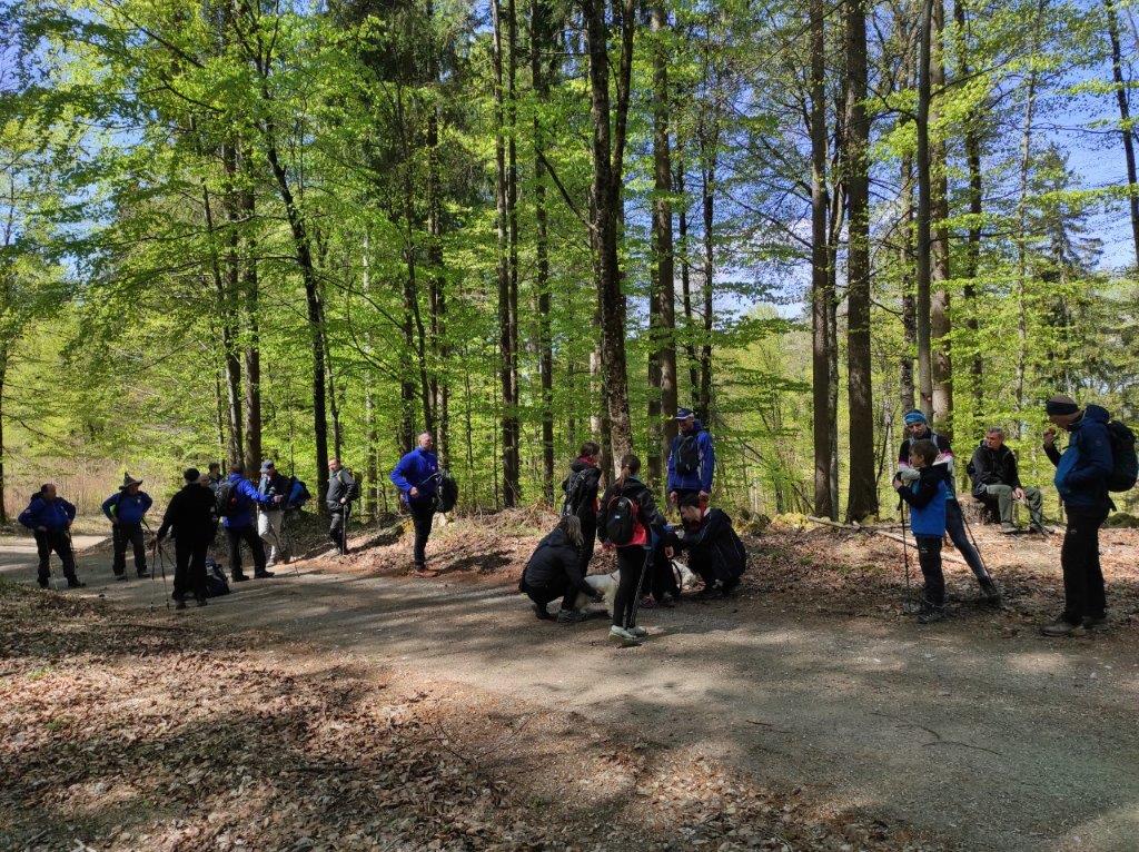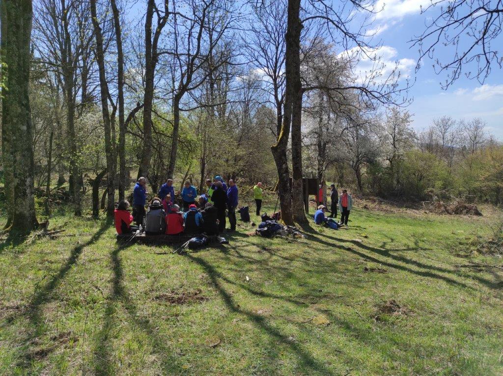 Na velikonočni ponedeljek smo se udeleženci pohoda odpravili iz Starega Loga skozi pašnik, do gozda in pot nadaljevali po Roški cesti. Cesta je danes znana po maratonu Po medvedovih stopinjah, na kar so nas opozarjale markacije v obliki velikih zelenih medvedovih šap. Po slabem kilometru smo zapustili Roško cesto, saj je nas markacija opozorila na vas Pugled, ki je bila v našem načrtu poti. To je zapuščen zaselek na obronkih Kočevskega Roga, ki so ga prvotno naselili kočevski Nemci, nastal pa je na umetno izkrčeni jasi v 15. ali 16. stoletju. Tudi tu je sadno drevje že v polnem razcvetu, tla pa mehča široka čemaževa preproga globoko v gozd. Če bi drevje znalo govoriti, bi nam povedalo marsikatero zanimivo zgodbo, ki se je zgodila v teh krajih. V gozdovih Kočevskega Roga se je namreč pred 80. leti odvila ena največjih ofenziv pri nas med drugo svetovno vojno in sicer velika Roška ofenziva. Danes so tu še vedno vidni ostanki cerkve, portali porušenih hiš in razbitih vodnjakov. Kraj je predvsem znan po tem, da se je med ofenzivo sem zatekel pisatelj Miran Jarc in kjer je tudi padel. Deset minut iz vasi, na velikem travniku, stoji spomenik nekaterim ostalim žrtvam te ofenzive. Od tu smo pot nadaljevali po markirani poti v gozd, ki nas je na vsakem koraku opominjal, da je pomlad tu in, da je zima že skoraj zaprla svoja vrata. Mimo spomladanskega cvetja, drobnega bukovega listja, prvih gob v listju in ob ptičjem petju v visokih krošnjah smo se po krožni poti vrnili na izhodišče v Stari Log. Napisala: Nataša Franko