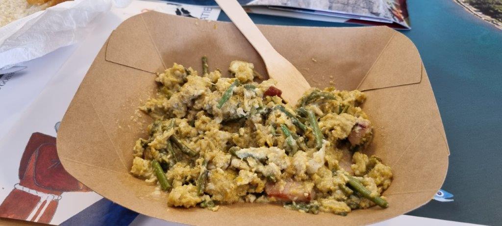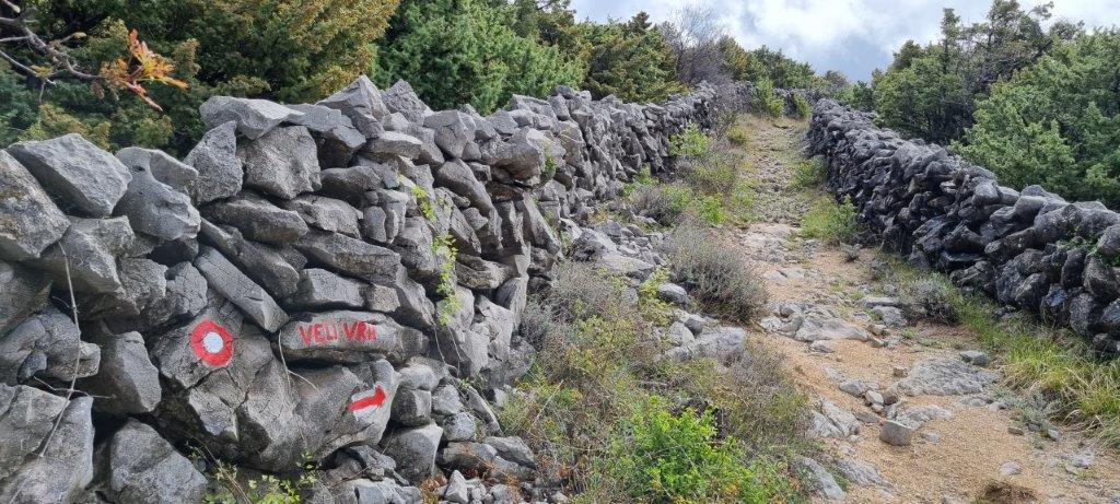 Vrnili smo se preko Velikega vrha po isti poti, kot smo prišli. Štrlečih kamnov ta čas niso uspeli potolči in naše utrujene noge so jih našle kar veliko. Pa kaj! Pot smo ves čas delili s prijatelji iz hrvaških planinskih društev in končali v Punatu na tradicionalni istrski jedi. Dobili smo frtajlo iz divjih špargljev, kockami slanine in jajci. Tudi za pijačo so poskrbeli.