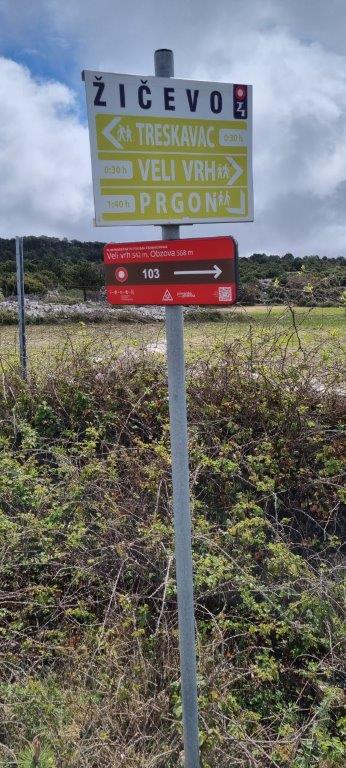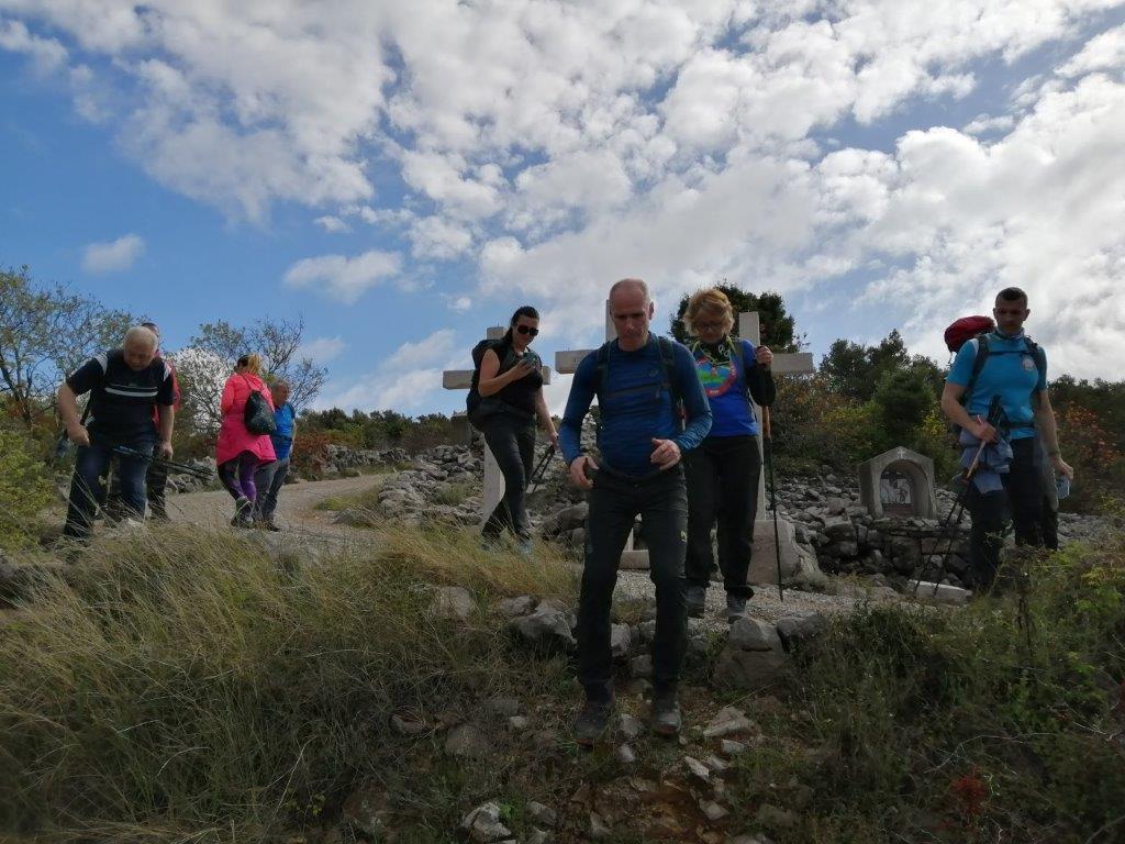 Vse pohode smo začeli pri kulturnem domu v Punatu. Dolgega ob devetih, srednjega in kratkega pa deset minut kasneje. Kratki pohod je potekal ob morju in je bil dolg okoli sedem kilometrov. Srednji in dolgi pohod je imel isto smer po ulicah Punata strmo v hrib. Ko smo se ločili od asfalta v naselju, smo pri treh križih krenili na križev pot. Pot je bila precej široka in posajena z domačimi kamni, ki so štrleli iz zemlje, kakor bi jih nalašč posadili, da bi se romarji spotikali ob njih. Nobena planinska pot ni gladka in lahka, ta pa je bila še posebej spotakljiva. Težko smo opazovali lepote narave, ker smo ves čas pazili kako bomo napravili naslednji korak. Pot je bila ves čas obzidana s prosto naloženih kamnov v obliki škarpe. Tako je bilo vse do širokega polja Žičevo. Tu je bil večji postanek. Dohiteli so nas prvi planinci iz skupine B, ki naj bi nadaljevali do Velikega vrha, ki se je kazal pred nami in se vrnili po isti poti nazaj v Punat. Naša pot pa je bila uro daljša in je potekala ob Velikem vrhu (568m), do najvišjega vrha Obzova celih 569 m nad morjem.