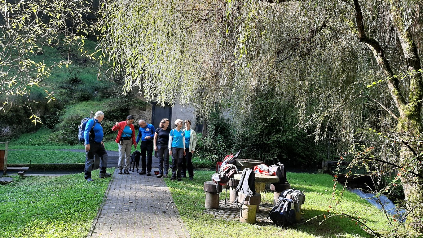 V svežem, sončnem dopoldnevu se nas je zbralo 8 upokojencev in 1 štirinožni prijatelj pred Supernovo, z namenom, da se družimo, razgibamo in nadihamo svežega zraka. Pohod je potekal ob krožišču s situlo, po makadamski poti pod Kamencami, skozi Potočno vas do Hudega, kjer smo zavili v gozd in šli po Rudolfovi poti do Bezgavca. Po počitku z okrepčilom, v čudovitem okolju Zoranovega mlina, smo se odločili, da pohod podaljšamo ob potoku do izvirov in se preko Daljnega vrha, Kamenc vrnemo na izhodišče. V prijetnem druženju, v čudoviti naravi, z razgledi na novomeško kotlino smo prehodili 10,5 km.