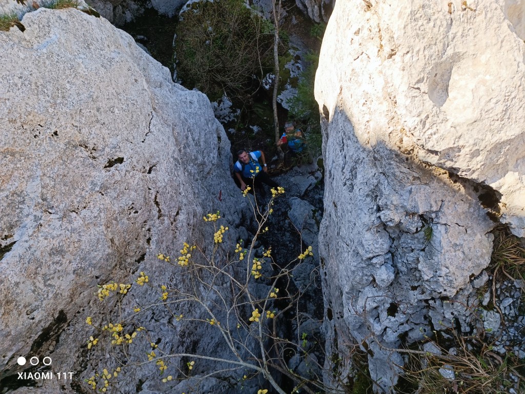 Nato se je začel sestop, ki pa nikakor ni potekal po poti pristopa. Nadaljevali smo po Vihoraški poti proti Samarskim stenam. Svet je kraški, gozd pa že skoraj štirideset let razglašen za naravni rezervat, in je kot tak izredno slikovit pa tudi težko prehoden. Mimo Luske (kjer je tudi vpisna skrinjica) smo prišli do Natašinega dola, od tu pa nadaljevali proti Ratkovemu zavetišču. To Ratkovo sklonište, ki je umeščeno v votlino pod Šempasovo steno, si je nekaj pohodnikov steklo tudi ogledat. Večina pa se nas je odločila na razcepu obrniti se naravnost proti Begovi dolini, kjer smo imeli parkirane avtomobile. Zavetišče nas je večina obiskala že lani, ko je bila naš cilj Zahodna skupina Samarskih sten. Tudi sicer smo morali biti že kar zadovoljni. Poleg Belih smo kot sestop dobili še Samarske in tisto vmes: Vihoraški put, ki povezuje Samarske in Bele stene, je po mnenju nekaterih najlepša planinska pot na Hrvaškem.