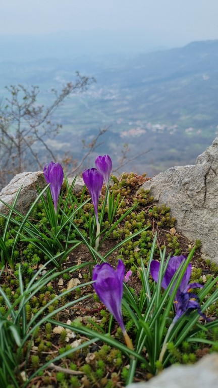 Pohodniško društvo Novo mesto je v soboto, 16.3.2024 organiziralo pohod na Sinji vrh. Zbrali smo se na običajnem mestu, na parkirišču OŠ Bršljin. Naša pot se je začela z vožnjo do Ajdovščine, kjer smo pri izviru Hubelj zapustili avtobus, obuli pohodne čevlje, nadeli nahrbtnike na rame in se podali v hrib. Najprej na Otliški Maj 847 m, od tu do kamnitega polža, delo arhitekta Danijela Popelarja, naprej do Otliškega okna in na naš današnji končni vrh, Sinji vrh 1002 m. Prilično številna skupina pohodnikov, kar 94 se nas je zbralo, od tega kar nekaj mladih planincev, se je vila kot jara kača po obronkih Trnovskega gozda. Kljub rahlim meglicam so se nam odpirali čudoviti razgledi na vipavsko dolino, do Vipavskega Križa in še dlje. Ob poti so nas razveselile prve pomladne rožice. Celo pot nas je, včasih malo sramežljivo, spremljalo sonce. Napoved je bila sicer slaba, dež, ampak vesolje je uslišalo naše goreče prošnje in nam podarilo čudovit dan. Dan je bil popoln, prijetna, ne preveč zahtevna pot, čudovita družba, narava, polna pljuča svežega zraka, včasih lahkoten, včasih malo težji korak…. Za doseči cilj se je pač treba vedno vsaj malo potruditi. Za nabiranje novih moči in umiritev dihanja so prav prišli kratki postanki. Seveda pa je popolnemu dnevu botrovala predvsem odlična organizacija, nič ni bilo prepuščeno naključju, zdelo se je, da niti vreme ne. Pohodniško društvo Novo mesto in njihovi vodniki so odlični in zaupanja vredni. Hvala vam za vaš trud in delo, ki ga z veseljem opravljate, to se zelo lepo čuti.