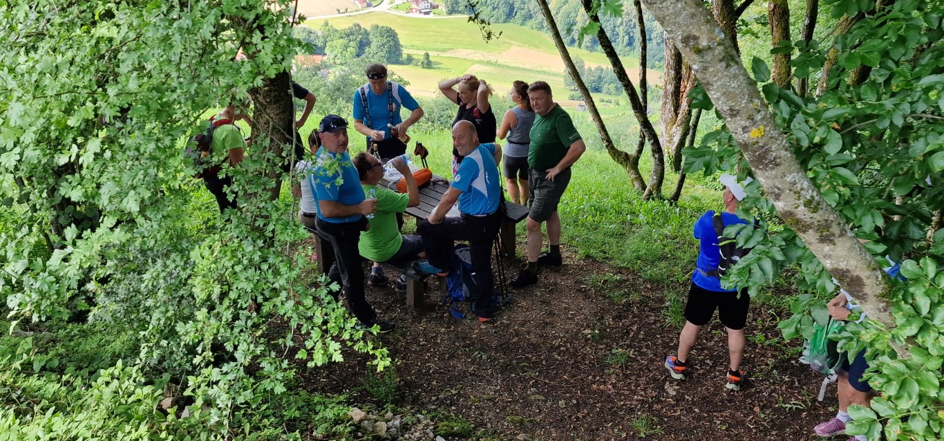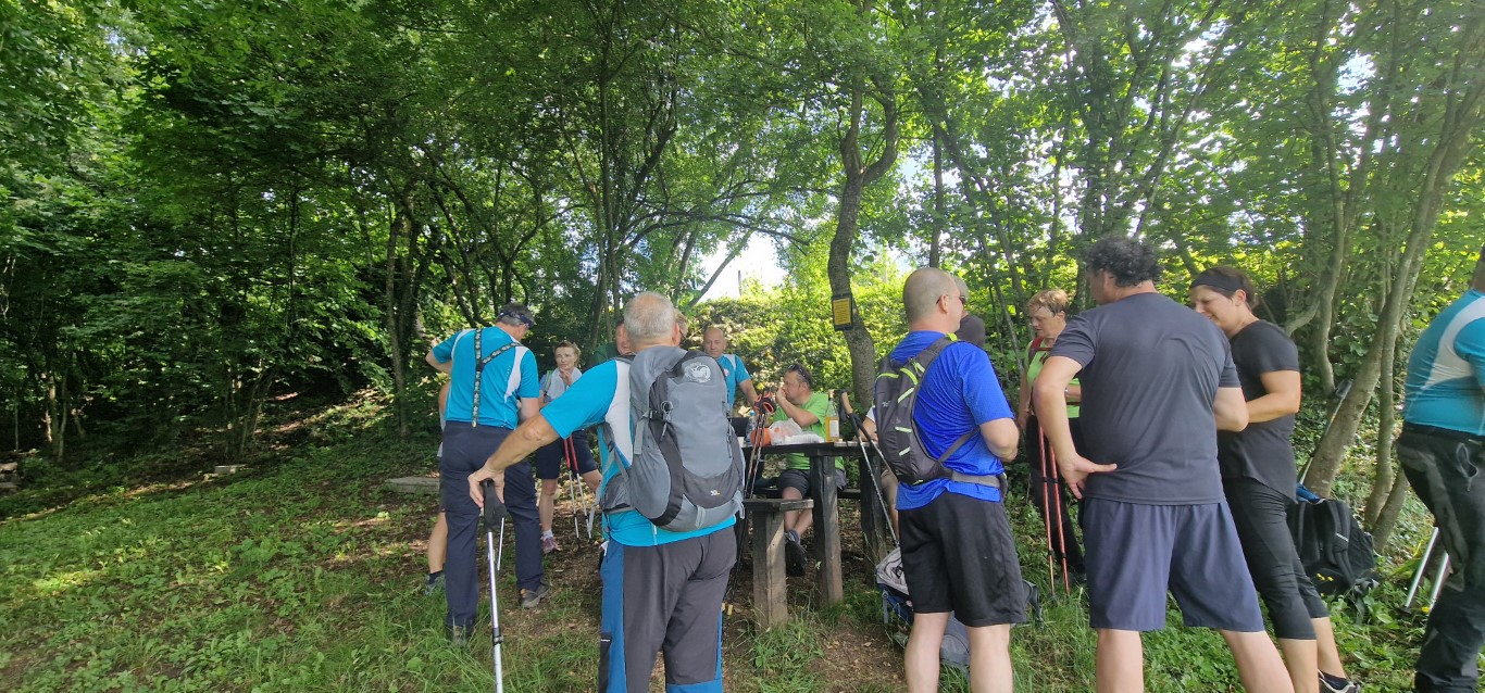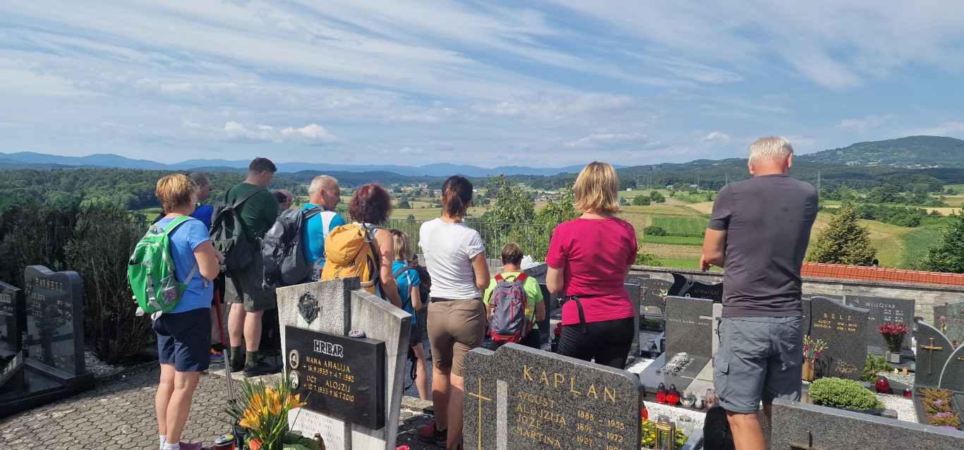 Kot že prejšnje leto smo se tudi tokrat zbrali pri Prinovcu v Šmarjeških Toplicah. Krenili smo po lepi sprehajalni poti v smeri Šmarjete in po dobrih desetih minutah hoje skrenili desno v gozd. Večji del smo hodili po uhojenih gozdnih stezah, le zadnjih nekaj metrov proti vrhu Vinjega vrha je bil žal asfalt. Na Vinjem vrhu smo počivali na idilični lokaciji s pogledom na reko Krko in otok Tržič. Sestop do pokopališča v Beli cerkvi je bil po potkah in stezicah med vinogradi, zadnji del pa po asfaltu. Na pokopališču smo se zaustavili, podoživeli trenutke s pokojno Klavdijo in nadaljevali skozi Družinsko vas nazaj na izhodišče.