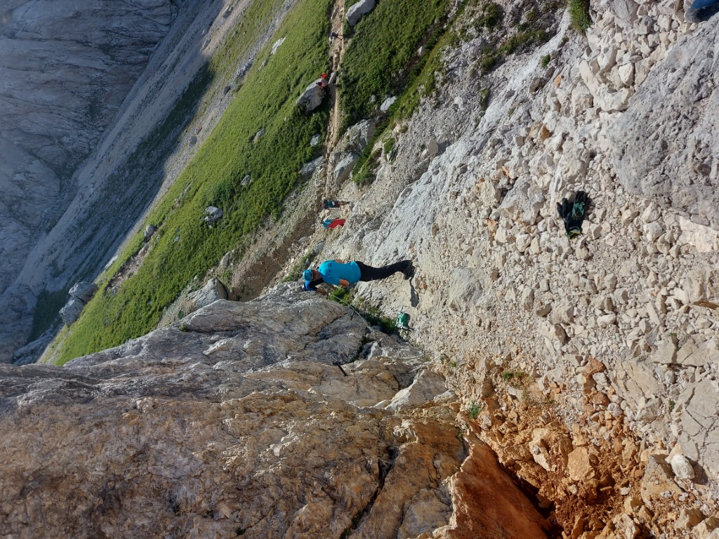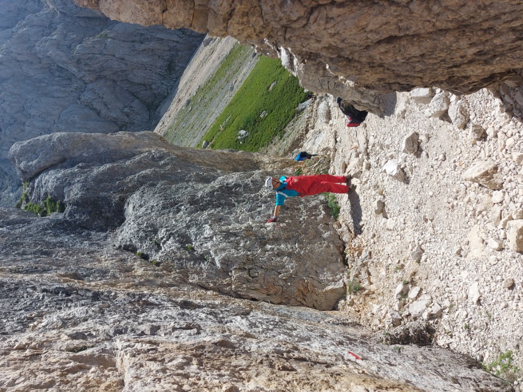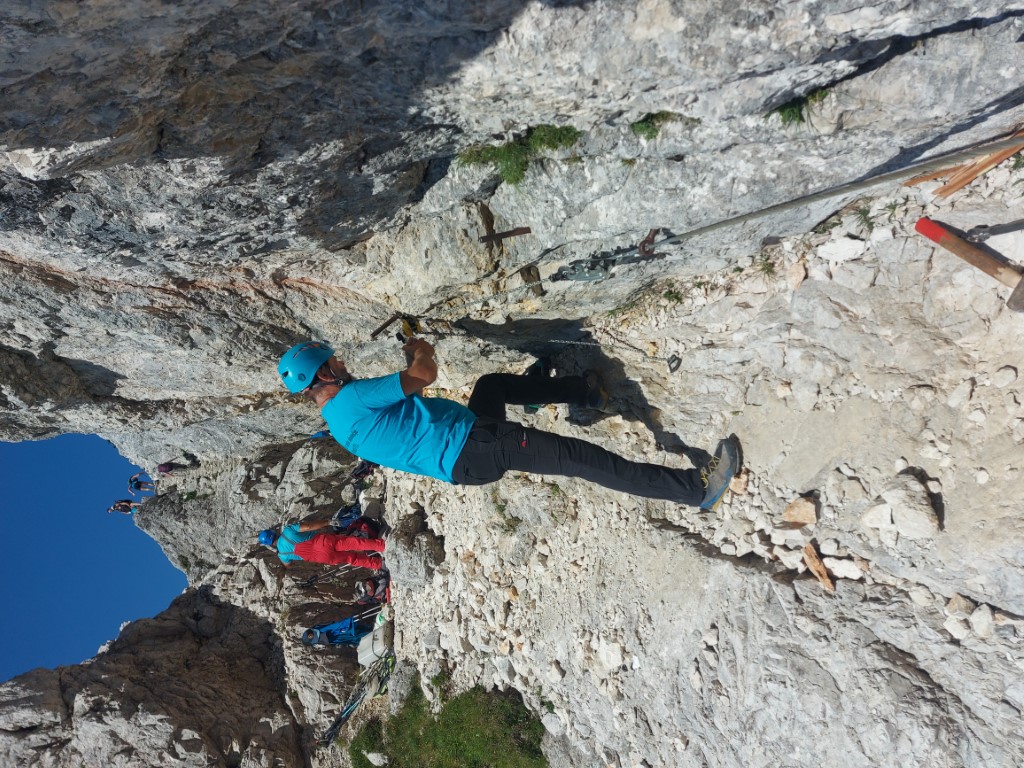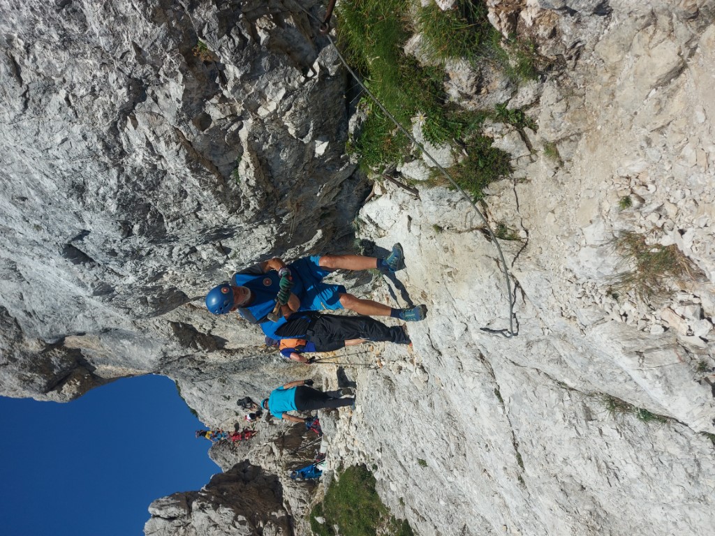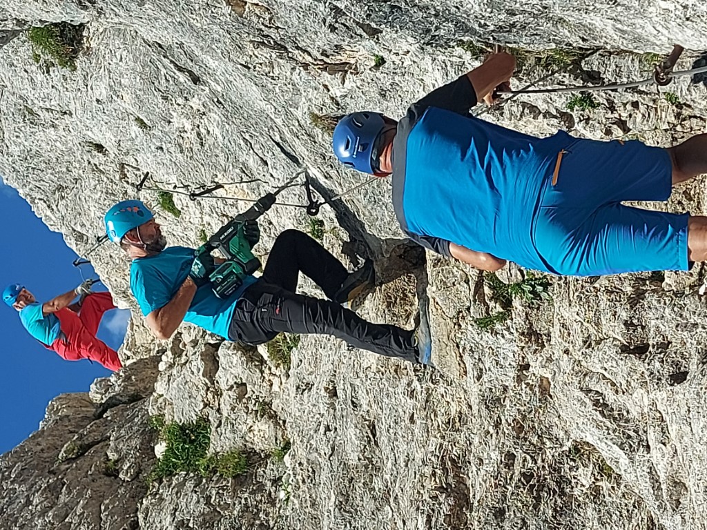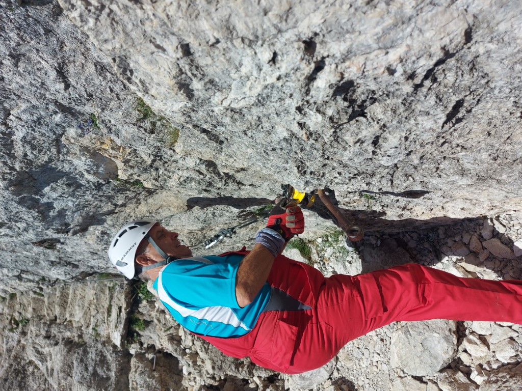 Do sedaj je to naša najzahtevnejša akcija, ki jo je vodila tehnična ekipa markacistov PZS. Mi smo jim bili v pomoč pri nošenju orodja in ostalih stvari potrebnih za menjavo klinov, ki so bili potrebni zamenjave na naši poti od Vodnikovega doma do Konjskega sedla.